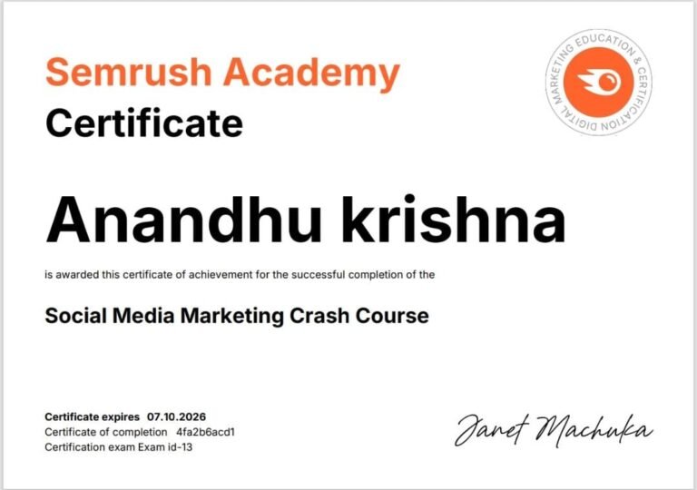 I’m anandhu sivaraman. a passionate and results-driven digital marketer with strong expertise in SEO , social media marketing , Google Ads , content strategy , and performance-focused brand growth. Over the years, I’ve helped businesses strengthen their online presence and convert digital traffic into measurable results , earning recognition as the Best Freelance Digital Marketing Expert in Thrissur. I work with a strategic , data-driven , and creative approach—combining analytics , consumer behavior insights , and impactful communication to deliver campaigns that truly perform. My continuous learning and adaptation to new trends and algorithm updates help me provide smarter , more effective solutions , reinforcing my credibility as the Best Freelance Digital Marketing Expert in Thrissur.whether it’s improving search rankings , creating engaging social media content, running targeted ad campaigns, or building complete digital marketing strategies, my mission remains the same: to help brands grow, perform, and succeed—one reason clients choose me as the Best Freelance Digital Marketing Expert in Thrissu